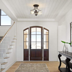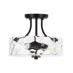 Lumin 2-Light 11.8 in.W Oil Rubbed Bronze Semi Flush Mount Modern Drum with Hammered Water Glass for Kitchen/Hallway