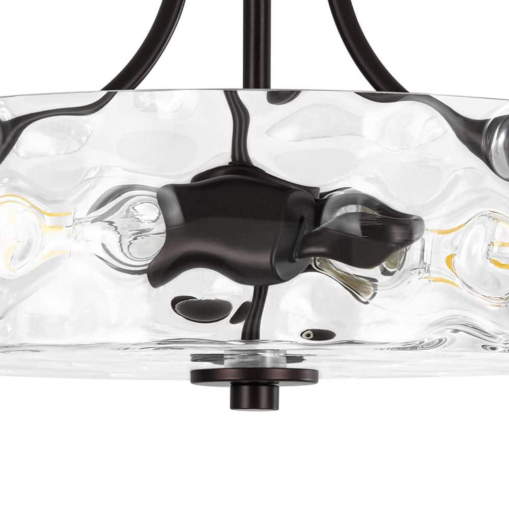 Refined and modern, the HUOKU 2-Light Semi Flush Mount Ceiling Light pairs sculptural elegance with subtle texture. Featuring an oil rubbed bronze finish and a wide, cylindrical shade crafted from hammered water glass, this fixture delivers both visual depth and practical illumination. Measuring 11.8 inches wide, its compact semi flush mount design is perfect for kitchens, hallways, bedrooms, or entryways. The top-open drum shade allows for easy bulb replacement, while the softly rippled glass enhances ambient light with organic charm. Ideal for transitional or contemporary spaces seeking understated sophistication.. Compatible Bulb Type: Eco-Incandescent,LED. Damp/Wet Rating: Dry Rated. Dimmable Capability: Dimmable. Features: Dimmable. Fixture Color Family: Bronze. Fixture Color/Finish: Oil Rubbed Bronze. Fixture Material: Metal. Glass Type: Water Glass. Included: Installation Instructions. Indoor/Outdoor: Indoor. Light Bulb Base Code: E26. Light Bulb Type Included: No Bulbs Included. Max. Bulb Wattage (W): 60 W. Number of Bulbs Required: 2. Package Quantity: 1. Product Type: Semi-Flush Mount Lighting. Product Weight (lb.): 5.28 lb. Recommended Light Bulb Shape Code: A19. Returnable: 90-Day. Shade Color Family: Clear. Shade Material: Glass. Shade Product Type: With Shade. Shape: Drum. Voltage: Line Voltage. Certifications and Listings: ETL Listed. Fixture Height (in.): 10 in. Fixture Width (in.): 11.8 in. Shade Diameter (in.): 11.8 in. Fixture Width (in.): 11.8 in. Number of Bulbs Required: 2. Product Type: Semi-Flush Mount Lighting. Fixture Material: Metal. Compatible Bulb Type: LED. Features: Dimmable. Shade Material: Glass. Shape: Drum