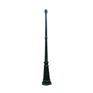 Classic 6 ft. outdoor lamp post constructed from weather resistant aluminum. Designed with a 3-in fitter at the top for standard use Beautiful textured black finish Suitable for wet locations Includes mounting template and anchor bolts Cast aluminum post fixture specifications 10.25-in diameter x 74-in high Fixture Color Family: Black Fixture Finish: Matte Manufacturer Color/Finish: Black Type: Pole Base Width (Inches): 10.28 Diameter (Inches): 3 Height (Inches): 72 Mounting Diameter (Inches): 3 Batteries Included: No Bulb Type: N/A (unlit) Dimmable: No Dusk-to-Dawn Sensor: No Light Bulbs Included: No Material: Aluminum Motion Sensor: No Number of Batteries Required: 0 Number of Bulbs Required: 0 Number of Outlets: 0 Photocell Sensor: No Power Source: N/A (unlit) Style: Traditional Usage Rating: Wet rated CA Residents: Prop 65 Warning(s): No ENERGY STAR Certified: No Safety Listing: Not safety listed UNSPSC: 39111600