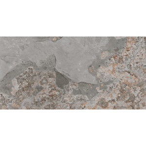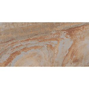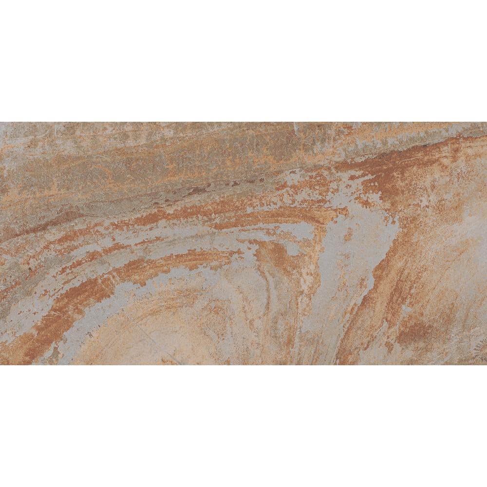The VitaElegante collection by Marazzi is a glazed porcelain tile portrayed as a modern interpretation of classic stones. VitaElegante Ardesia is a 12 in. x 24 in. porcelain tile that captures the effect of distinct clefts, mineral deposits and the effect of randomly layered color found in natural slate. Available in a large format with minimal pattern repeat, it can be installed on both floors and walls for an elegant style upgrade to any decor. Softened and burnished to a lustrous finish, the tile features shades of green, blue and rust that support the warmth of nostalgia coupled with modern color harmony. Create a stunning design with this gray and rust stone look tile. Perfect tile for kitchen and bathroom floors and walls. First-quality porcelain tile, suitable for indoor and outdoor use. 15.6 sq. ft., 8 pieces per case; case weight is 64.8 lbs. Grade 1, first-quality porcelain tile for floor, wall and countertop use. 12 in. width x 24 in. length x 3/8 in. thick. Glazed, textured matte finish with a medium sheen and slight variation in tone. Class 4 abrasion resistance - suitable for floor applications with heavy foot traffic. Impervious tile has water absorption of less than 0.5%. C.O.F. greater than .60 to .79 is for commercial or residential floor and wall applications. Skid resistant. Frost resistant. Residential and commercial use. Please note that this product has high color variation and the graphic may vary between pieces. Application Location: Backsplash, Floor, Wall. Break Strength (lb.): 450 lb. Color Family: Orange. Color/Finish: Ardesia. Commercial / Residential: Commercial / Residential. DCOF Rating: Greater than or equal to 0.42. Edge Type: Pressed. Flooring Product Type: Porcelain Tile. Flooring and Tile Look: Stone Look. Indoor/Outdoor: Indoor, Outdoor. Installation Method: Mortar. Location: Bathroom, Countertop, Entry Way, Fireplace, Kitchen. Minimum Acclimation Period: No Acclimation Required. Pool Location: Interior Pool, Surrounding Pool. Pool PEI Rating: Inside Pool, Surrounding Pool. Shade Variation: V2 - Slight Variation. Shower Floor Compatibility: Not Compatible. Style: Mediterranean, Rustic. Tile Features: Chemical Resistant, Frost Resistant, Radiant/Underfloor Warming Heating. Tile Finish: Textured. Tile Format: Standard. Tile Material: Porcelain. Water Protection: Waterproof. Approximate Tile Size: 12x24. Product Length (in.): 24 in. Product Thickness (mm): 10 mm. Product Width (in.): 12 in. Suggested Grout Line Size: 3/16.