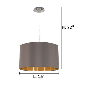 Maserlo 15 in. W x 72 in. H 1-Light Cappucino and Satin Nickel Pendant Light with Drum Metal Shade