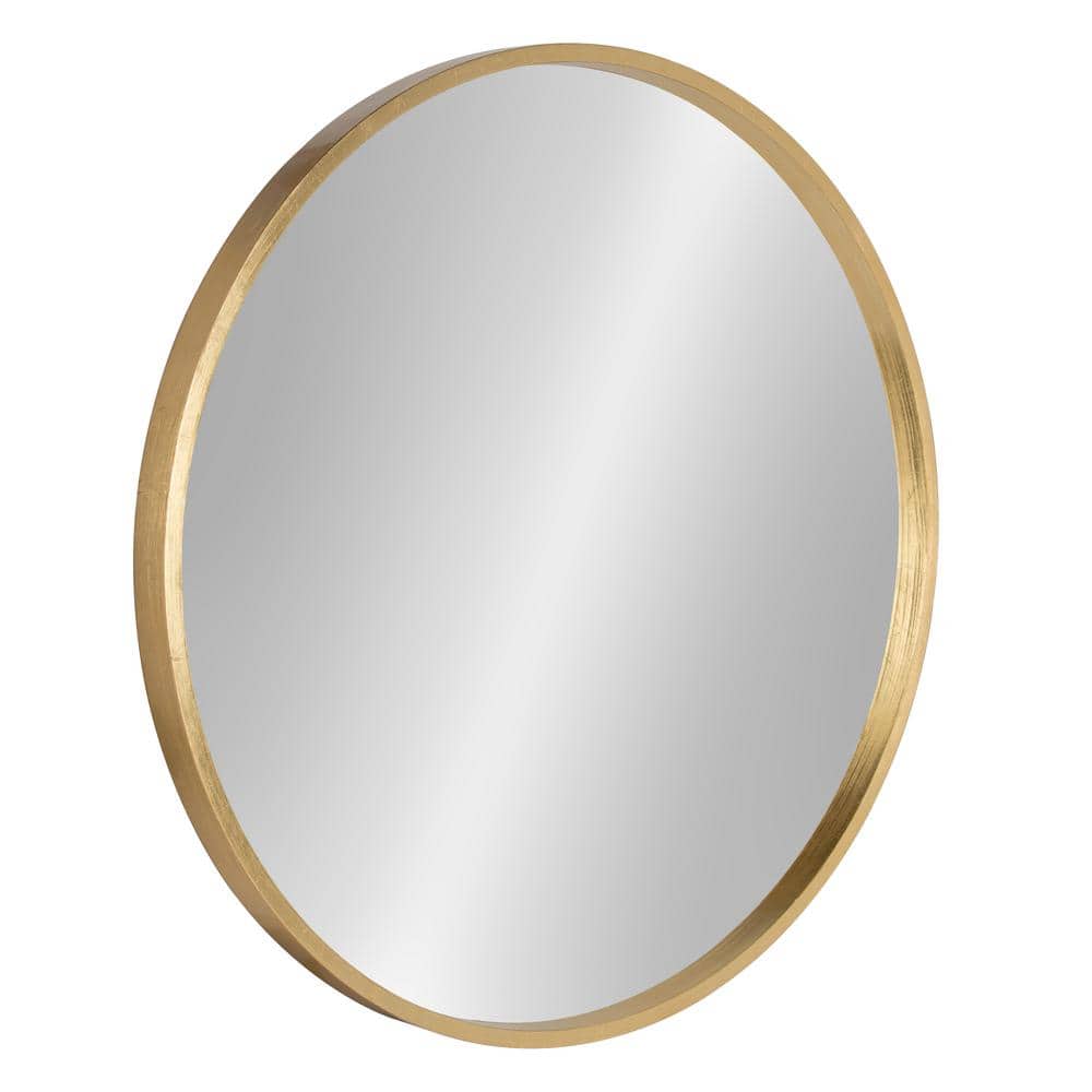 This decorative round wood mirror is a beautifully unique accent piece for your home decor. Hang this mirror above a fireplace, over a sofa, or above your bedroom headboard for a stunning wall accent. This mirror is also stunning as a vanity mirror. The reflective mirror surface has a 24.5 inch diameter. The outer dimensions measure 25.6 inches diameter and 1.25 inch depth from the wall. The mirror weighs 8 pounds. Two metal d-ring hangers are attached to the back of the frame for easy wall display. This gorgeous wood contemporary modern wall mirror piece will be the perfect fit in your existing decor theme in any room of the home!. Collection Name: None. Features: No additional features. Frame Color/Finish: Gold. Frame Material: Composite. Frame Type: Framed. Frame style: Contemporary. Hub Required: No hub connection available. Mirror Type: Decorative Mirror. Orientation: Vertical. Product Weight (lb.): 6 lb. Returnable: 90-Day. Style: Modern. Mirror Height: Medium (20-40 in.). Product Depth (in.): 1.5 in. Product Height (in.): 25.6 in. Product Width (in.): 25.6 in. Thickness (in.): 1.5 in. Width (in.) x Height (in.): 25.6 x 25.6. Mirror Height: Medium (20-40 in.). Frame Type: Framed. Orientation: Vertical. Features: No additional features. Width (in.) x Height (in.): 25.6 x 25.6. Frame Material: Composite. Mirror Type: Decorative Mirror. Style: Modern