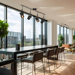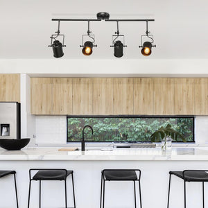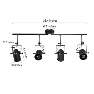 Modern Industrial Black Fixed Track Lighting Kit 4-Light Linear Task Light with Rotatable Cylinder Heads, LED Compatible