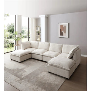 Sturdy solid wood frame, high-end breathable Linen fabric, filled with high-quality sponge, The cushions are filled with duck down making this modular sectional sofa beautiful and comfortable. Product Type: Sofa & Chaise Overall Shape: U-Shaped Sectional Orientation: Symmetrical Sofa Design: Standard Frame Material: Solid + Manufactured Wood Leg Color / Finish: Black Fill Material: Fabric Seat Construction: Manufactured Wood Cushion Construction: Foam Seating Capacity: 4 Weight Capacity: 250 Total Number of Pieces Included: 4 Accent Pillow Included: No Imported: Yes
