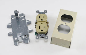 Steel box with outlet - ivory 1-3/8-In deep For installation requiring a duplex grounding receptacle Item is paintable Commercial grade steel Color/Finish Family: Off-white Series Name: SnapMark Sub Type: Standard Sub-Brand: N/A Type: Rectangular Assembled Depth (Inches): 1.375 Assembled Height (Inches): 4.125 Assembled Width (Inches): 2 Knockout Size: 1/2-in Maximum Weight Supported (lbs.): 30 Weight (lbs.): 0.5 Construction Type: Welded Cover Included: Yes Fire Rating in Hours: 0 GFCI Receptacle Included: No Low Voltage: No Material: Metal Mounting Type: Surface-mount Number of Gangs: 1 Number of Knockouts/Holes: 5 Old or New Work: New work/Old work Package Quantity: 2 Use Location: Wall Weatherproof: No CA Residents: Prop 65 Warning(s): No Safety Listing: UL safety listing UNSPSC: 39121300