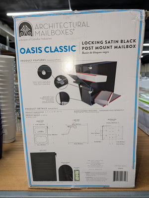 The Oasis Classic offers an oversized hopper door design with internal security baffle, extra-large locking lower storage compartment and modern styling. It is constructed of powder coated heavy gauge galvanized steel panels with stainless steel hinges for extra durability. The Oasis Classic protects deliveries with an enhanced locking system, pry-resistant lock bracket and Weather-Tite rubber seals. Accepts parcels ranging in size from 9.75 in. x 6.5 in. x 2 in. to 9.75 in. x 4 in. x 2.75 in. Galvanized steel construction that is fully powder coated inside and out for added corrosion resistance. Concealed outgoing mail clip hidden discretely behind hopper door. Heavy duty stainless steel cam lock with anti-pry latch reinforcement. Weather tite rubber seals and stainless steel hardware. Galvanized steel red notification flag. Embossed front panel provides a place for house numbers to be applied. Mailbox is 11.5 in. W x 15.1 in. H x 18.1 in. D. Includes installation instructions. 4-pre-drilled holes makes for an easy installation. Hardware and mounting bracket may be required to mount to posts not manufactured by Architectural Mailboxes (not included). Order Architectural Mailboxes adapter plate 7540B for 4 x 4 wood post installation. Approved by the US postmaster general. Mailbox Size: Extra Large. Security: Locking. Access Type: Front Only. Material: Galvanized Steel. Mount Type: Post Mount. Mailbox Capacity (cu. in.): 2256. Mailbox Style: C3. Features: Outgoing Mail Indicator.