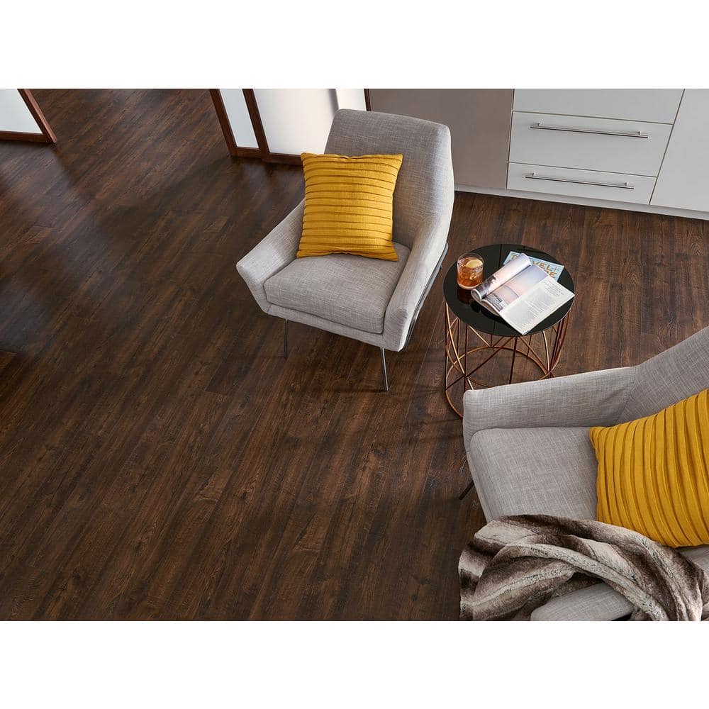 Outlast+ Java Scraped Oak 12 mm T x 6.1 in. W Waterproof Laminate Wood Flooring (16.1 sqft/case)