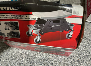 Product Details: Get on the right level with the Heavy Duty Rolling Work Seat with storage trays. Whether it s a short project or hours on the clock this solid rolling work seat will be the end of stressful squatting and kneeling. With its robust 4-inch rubber lockable wheel casters it can roll over any surface. Always have the right tools on hand with the full-size pullout drawer and dual over-sized removable trays. The add-on bottle/cup holders are great for spray bottles or a favorite beverage. The comfort is provided by the injected poly-foam concave seat cushion for hours of turning wrenches or detailing. The Heavy Duty Rolling Work Seat is a solid yet comfortable rolling workspace. BUILT TOUGH: With a square steel frame and durable plastic body, you won t feel flex or sagging when you sit and roll on this seat. ROLLS SMOOTH: The 4-inch rubber coated wheels roll like butter across driveways and shop floors. Direction changes are effortless thanks to ball-bearing swivel action on all four corners. STORES MORE: With a full-length pull-out drawer and two removable trays, you can store tools, cans, rags, adult beverages and other car care and repair essentials. TAKE A SEAT: The 18-inch x 10-inch bench has a comfy concave shape to keep you in place as you work and maneuver. MAX CAPACITY: 300-pounds For product related questions please contact Alltrade Tools at 1-800-423-3598 . Features: Steel Frame and Durable Plastic Body with 18 X 10 Bench. Heavy Duty 4 Rubber Coated, Lockable 360 Degree Swivel Action Wheels. Pull-out Tool Drawer and Two Removable Parts/Accessory Trays Provide Tool and Parts Storage. 300 Lb. Capacity. Weight: 13.82 Lbs. All Specifications: Brand: Powerbuilt. Model: 240036