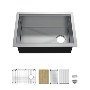 Professional Zero Radius 27 in Undermount Single Bowl 16 Gauge Stainless Steel Workstation Kitchen Sink with Accessories