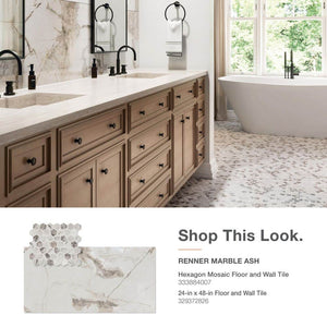 Elevate your designs in a big way with Daltile's large-format styles. The Renner Marble Ash 24 in. x 48 in. porcelain tile creates a visual design that offers depth and versatility. Its earthy gray tones and dark marble veining create a statement that is truly timeless. This polished porcelain tile is stainproof, dentproof, and water resistant - perfect for kitchen and bathroom floors and walls.. Application Location: Backsplash,Floor,Wall. Break Strength (lb.): 275 lb. Color Family: Gray. Color/Finish: Marble Ash. Commercial / Residential: Commercial / Residential. DCOF Rating: Less than 0.42. Edge Type: Rectified. Flooring Product Type: Porcelain Tile. Flooring and Tile Look: Stone Look. Indoor/Outdoor: Indoor. Installation Method: Mortar. Location: Bathroom,Countertop,Entry Way,Fireplace,Kitchen. Minimum Acclimation Period: No Acclimation Required. Pool Location: Interior Pool. Pool PEI Rating: Inside Pool. Returnable: 90-Day. Shade Variation: V3 - Moderate Variation. Shower Floor Compatibility: Not Compatible. Tile Features: Chemical Resistant,Frost Resistant,Heat Resistant,Radiant/Underfloor Warming Heating,Rectified Edge. Tile Finish: Polished. Tile Format: Large Format. Tile Material: Porcelain. Water Protection: Waterproof. Approximate Tile Size: 24x48. Product Length (in.): 47.244 in. Product Thickness (mm): 10 mm. Product Width (in.): 23.622 in. Suggested Grout Line Size: 3/16. Approximate Tile Size: 24x48. Tile Finish: Polished. Application Location: Floor. Flooring and Tile Look: Stone Look. Location: Bathroom. Application Location: Wall. Location: Kitchen. Shade Variation: V3 - Moderate Variation