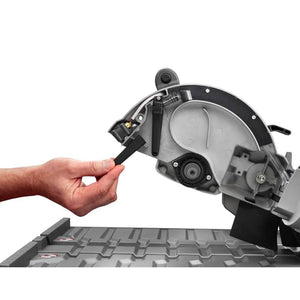 RIDGID introduces the 9 Amp 7 in. Job Site Wet Tile Saw with stand included. This is the most affordable pro tile saw on the market. This saw is upgraded from the previous model giving you a higher performance table system with 80% less water spray for faster clean up. Its powerful 9 Amp, 1-3/4 HP motor, best-in-class cutting capacities, die cast aluminum table and heavy-duty arm all come standard on this saw. Every feature on this saw is innovative and the definition of quality for a pro tile saw. The Deep Well Wave Wall will extend the life of your pump and the removable water nozzles maximize water efficiency to the blade while cutting. All of these amazing features are backed by the RIDGID Industry Leading Lifetime Service Agreement. That means FREE Parts. FREE Service. For LIFE. The 9 Amp 7 in. Job Site Wet Tile Saw includes a stand, a 7 in. blade, and an operator's manual.. Machined Roller System provides longevity and precision. Includes: Stand and Tile Saw Accessories. Free Parts and Service for Life with Registration. Blade Type: Diamond. Cordless/Corded: Corded. Cuts Through: Ceramic,Masonry,Porcelain. Dust Collection Method: None. Horsepower (hp): 1.75 hp. Portability: Bench. Saw Blade Material: Diamond. Tile Saw Features: Bevel,Laser Guide,Plunge,Stand,Water Pump. Tool Type: Wet Tile Saw. Tools Product Type: Saw with Stand. Voltage (V): 120 V. Blade Size (in.): 7 in