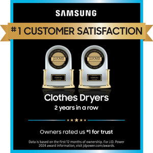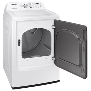 Samsung's new dryers have advanced features like Sensor Dry, which optimizes cycle time and temperature to thoroughly dry without damaging your clothes. Also, with 7.2 cu. ft. capacity and 8 Preset Drying Cycles, you can do fewer loads in less time and fulfill almost every drying need. Sensor Dry: Helps prevent overdrying for optimal fabric care 8 Preset Drying Cycles: More cycles to best suit your drying needs Reversible Dryer Door: Choose the direction your dryer door opens Smart Care: Easy troubleshooting from the convenience of your smartphone Lint Filter Indicator: The Filter Check Indicator light lets you know when it is time to clean the filter 3 Additional Drying Options: Further options to provide optimal care for all fabric types 4 Temperature Levels: Ideal temperatures to treat your clothes gently and thoroughly Large 7.2-cu ft Capacity: Fewer loads, less time in the laundry room Appliance Color/Finish: White Manufacturer Color/Finish: White Sub-Brand: N/A Adjustable Height: No Capacity (Cu. Feet): 7.2 Depth with Door Closed (Inches): 30.25 Depth with Door Open (Inches): 50.125 Dryer Capacity (Cu. Feet): 7.2 Height (Inches): 44 Item Weight (lbs.): 110.2 Maximum Assembled Height (Inches): 44 Minimum Assembled Height (Inches): 44 Size: Large Width (Inches): 27 ADA Compliant: No Air Dry/Air Fluff Cycle: Yes Appliance Type: Gas dryer Automatic Temperature Control: Yes Check Lint Screen Light: Yes Child Safety Locks: Yes Control Panel Language: English Control Type: Electro-mechanical Custom Program Cycle: No Customizable: No Cycle Status Lights: Yes Delay Start: Yes Delicate Cycle: Yes Door Type: Reversible side swing Drum Material: Powder coat Dryer Load Type: Top load Dryer Rack: No Eco Monitor: No End-of-Cycle Signal: Yes Energy Efficient Cycle: No Fingerprint-Resistant: Yes Four-Way Venting: No Heat Pump: No Heavy Duty Cycle: Yes Hub Required: No Interior Lighting: No Lowe's Exclusive: No LP Convertible: Yes Matching LP Conversion Kit: LPKIT-4 Number of Cycles: 8 Number of Temperature Selections: 4 Permanent Press Cycle: Yes Portable: No Power Source: Gas Quick/Express Cycle: Yes Reversible Door: Yes Self-Cleaning Lint Filter: No Sensor Dry Cycle: Yes Sound Reduction: No Stackable: No Steam Cycle: No Time Remaining Display: Yes Timed Dry Cycle: Yes Touch-Up Cycle: No Towels Cycle: No Venting Sold Separately: Yes Venting Type: Vented Voice Controlled: No Window in Door: No Wrinkle Free Cycle: Yes App Compatibility: No Bluetooth Compatibility: No Complete the Set Model IDs: WA45T3200AW; DV-2A Matching Electric (Model #): DVE45T3200W Matching Previous (Model #): DV40J3000GW Matching Washer (Model #): WA45T3200AW Smart Compatible: No Wi-Fi Compatibility: No Works with Amazon Alexa: No Works with Android: No Works with Apple HomeKit: No Works with iOS: No Works with SmartThings: No Works with Sonos: No Works with the Google Assistant: No CA Residents: Prop 65 Warning(s): Yes ENERGY STAR Certified: No NSF Certified Sanitary Dry: No Safety Listing: CSA safety listing UNSPSC: 52141600