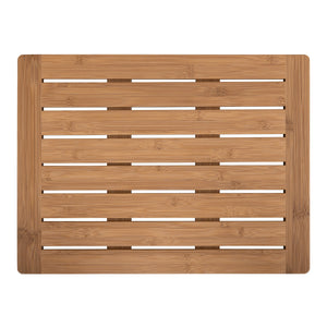 Enhance your bathroom with our Bamboo Bath Mat, designed to combine both functionality and style. Made from 100% natural bamboo, this slatted mat features a sleek lacquered finish for a modern look while ensuring durability and water resistance. Equipped with non-skid feet, it offers grip, keeping the mat in place on wet surfaces. The bamboo material is a low-maintenance yet elegant addition to any bathroom. Features: 100% Bamboo Lacquered finish Weight capacity: 300 lbs Made in: China Dimensions: 24 x 18 x 0.84 H Content: Bamboo Care Instructions: Use a damp cloth or sponge with mild detergent to wipe the surface. Avoid strong acidic cleaners. Note: The digital images we display have the most accurate color possible. However, due to differences in computer monitors, there may be variations in color between the actual product and your screen. . Features: 100% Bamboo. Non-Skid Feet. 24 x 18 x 0.84 H. All Specifications: Brand: Seville Classics. Features: Nonskid Backing. Mat Size: 2 ft. x 1 ft. 5 in.. Material: Bamboo. Shape: Rectangle. Thickness: 0.84 in.