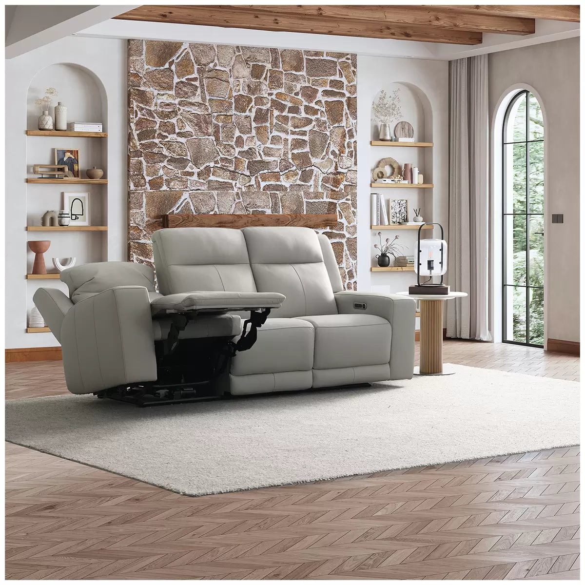 Bring comfort and modern design to your living room with the Simon Li Furniture Leather Power Reclining Sofa. Upholstered in supple top-grain leather on all seating surfaces, this sofa features smooth, dual power recliners with easy push-button controls. The generously padded cushions, supportive headrests, and wide track arms make it both stylish and functional. Designed with durability in mind, it offers long-lasting seating comfort while adding a sleek, contemporary look to your home.