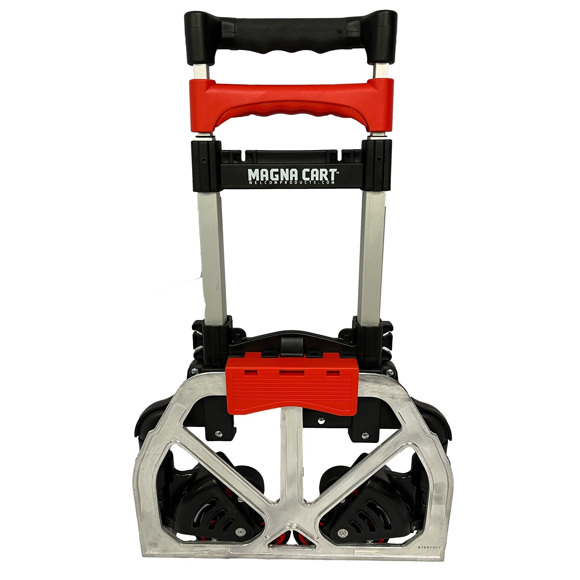 The Magna Cart Personal Hand Truck Magna Cart Is the Original and World's Best-Selling Aluminum Folding Hand Truck Telescoping Handle Extends to 39 inches 15 Wide Aluminum Base Easily Transports up to 150 lb. of Cargo 6-wheel Design Allows for Easy Maneuverability over Door Thresholds and Stairs Compact, Folds Flat to Only 2.5 Thick for Easy Storage and Transportation.