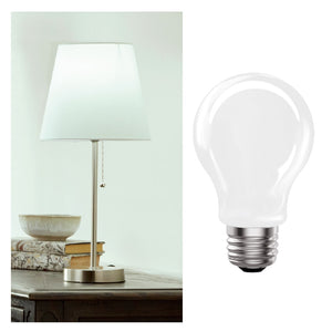 60 Watt replacement using only 8.5 Watts (800 lumens) Rated to last 15 years based on 3 hours per day use Saves 96 dollars on energy costs per bulb versus 60-Watt incandescent over the bulb's life 60-Watt EQ A19 E26 LED Filament Light Bulb, Frosted (4-Pack) 2700K color temperature provides a soft white glow Lasts for 17,000 hours, so you will not have to worry about frequent replacements It is Dimmable Medium base: standard E26 socket UL listed for wet locations, for indoor or enclosed outdoor use Bulb Finish: Frosted Color Rendering Index (CRI): 90 Color Temperature (Kelvins): 2700 Light Color: Soft white Type: General purpose Bulb Diameter (Inches): 2.362 Length (Inches): 4.134 3 Way: No Battery Back-Up: No Blacklight: No Built-In Speakers: No Bulb Material: Glass Bulb Shape: A-style Bulb Shape Code: A19 Bulb Type: LED Dimmable: Yes Dusk-to-Dawn Sensor: No Edison: Yes Enclosed Fixture Rated: Yes Energy Efficient: Yes Filament Style: X shape Grade: Residential Hub Required: No Light Bulb Base Type: E26 Lowe's Exclusive: Yes Lumens: 800 Motion Sensor(s) Included: No Package Quantity: 4 Package Type: Multi-pack Plug-In Type: Screw-in Primary Usage: Light fixtures Rapid Start: Yes Rated Life (Hours): 17000 Remote Control Included: No Scheduling Ability: No Shatter Resistant: No Tube Length (Inches): 0 Usage Rating: Wet rated Use Location: Indoor Vintage: No Voice Controlled: No Volts: 120 Wattage: 8.5 Wattage Equivalent: 60 App Compatibility: No Bluetooth Compatibility: No Smart Compatible: No Wi-Fi Compatibility: No Works with Amazon Alexa: No Works with Android: No Works with Apple HomeKit: No Works with iOS: No Works with SmartThings: No Works with the Google Assistant: No CA Residents: Prop 65 Warning(s): Yes CEC Compliant (CA): Yes Encircled E Required on Product or Pkg: No ENERGY STAR Certified: No Safety Listing: UL safety listing UNSPSC: 39101600