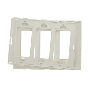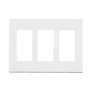 Wall plates provide the finishing touch to switches, outlets and lighting controls. They serve to protect the devices as well as provide a decorative accent which can blend in or contrast with the wall. In some cases wall plates are packaged with the device, but generally they are sold separately. Wall plates are available in a broad selection of configurations from single to multi-gang, as well as in the form of outdoor weather resistant covers. They are generally constructed of plastic, unbreakable thermoplastic or stainless steel and are typically available in Standard, Midway and Jumbo sizes.. Color Family: White. Color/Finish: White. Electrical Product Type: Wall Plate. Features: No Additional Features. Included: No additional components or accessories are included. Number of Gangs: 3-Gang. Package Quantity: 1. Returnable: 90-Day. Shape: Rectangular. Wall Plate Configuration: Duplex Outlet. Wall Plate Deco Style: Traditional/Classic. Wall Plate Material: Plastic. Certifications and Listings: CSA Certified,UL Listed. Product Depth (in.): .22 in. Product Height (in.): 4.5 in. Product Width (in.): 6.38 in. Number of Gangs: 3-Gang. Wall Plate Material: Plastic. Package Quantity: 1