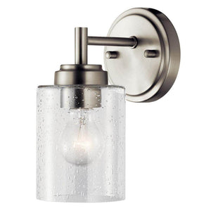 Winslow 1-Light Brushed Nickel Bathroom Indoor Wall Sconce Light with Clear Seeded Glass Shade