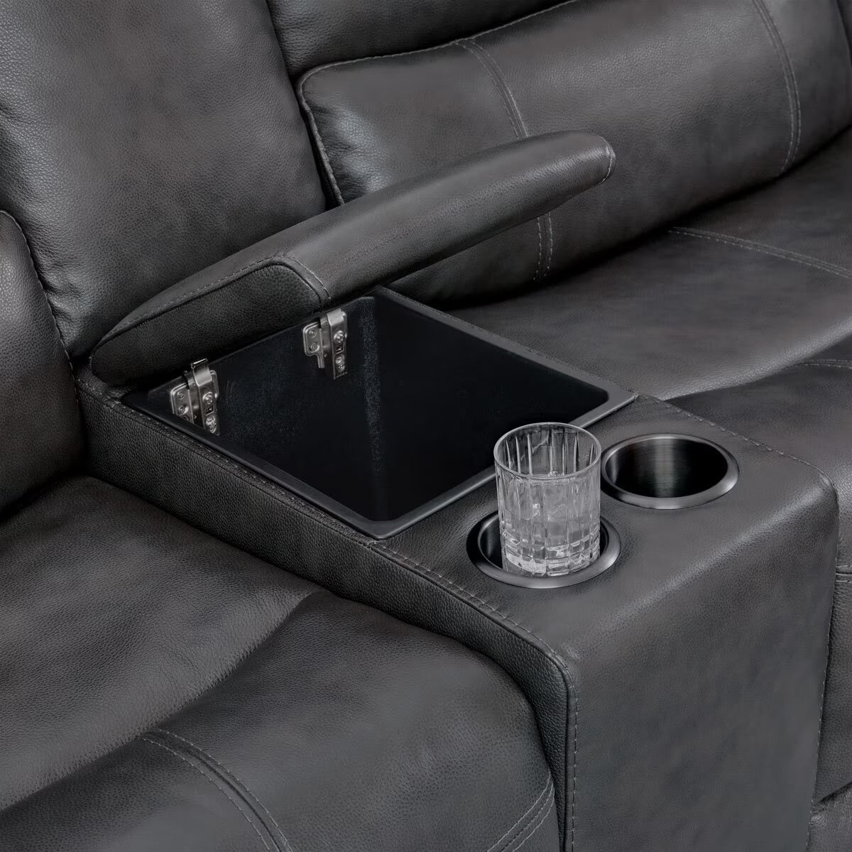 Relax in style with the Wylder 6-Piece Leather Power Reclining Sectional with Power Headrests. Crafted with top-grain leather on the seating areas and vinyl match on the sides and back, this sectional offers both durability and elegance. It includes 3 power recliners with adjustable power headrests, a storage console with stainless steel cup holders, and multiple charging options with built-in outlets and USB ports. The Leggett & Platt CloudZero Reclining Mechanism ensures superior comfort and support, making it the perfect centerpiece for family gatherings, movie nights, or everyday lounging.