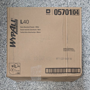 WypAll L40 Towels are effective wipers that absorb liquids lightning-fast. These towels are made of bonded cellulose using DRC (double re-creped) technology for strength, softness and absorbency. As a wiping cloth, it soaks up liquids fast, but all you'll feel is softness, thanks to a plush, touchable outer layer. In fact, it's a popular choice for patient wiping in healthcare industries, for bathing and patient drying. These utility towels are specially designed to absorb liquids, lubricants and oils (in restaurants for wiping counters, in mechanic shops, industrial and commercial factories and more), yet they're soft enough for use on face and hands. Experience the difference in superior absorbency and cleaning at your home or office today! Quarterfold Ideal for benchtop use. Poly-packed. Towel/Wipe Type: Dry Wipes; Application: Bench Top; General Purpose; Applicable Material: Glass; Metal; Plastic; Stainless Steel; Wood; Material(s): Double Recrepe (DRC). The towels are outstanding general-purpose towels. Strong enough for wiping equipment, built to absorb liquids, lubricants and oils. Touchable outer layer means wipers are soft enough to use on skin. L40 Towels Color/Finish Family: White Series Name: N/A Sub-Brand: N/A Type: Shop towel Length (Inches): 12 Size: 22.5-oz Width (Inches): 12.5 Material: Polyester Package Quantity: 1008 CA Residents: Prop 65 Warning(s): No UNSPSC: 47131500